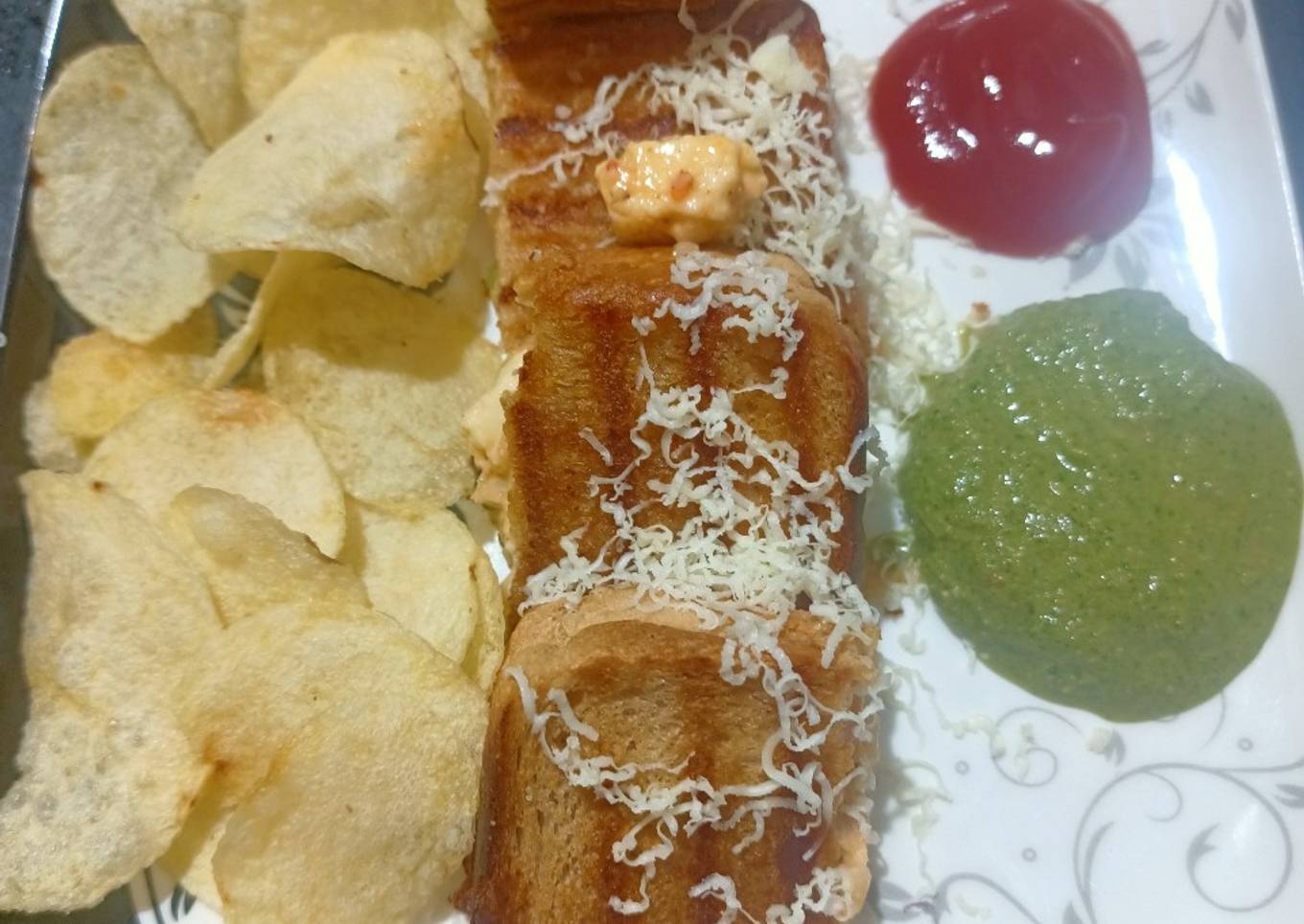 - Now take bread slice spread butter add the stuffing and grate some cheese cover it with another bread and grill it in pan or toaster with oil,ghee or butter as per choice.