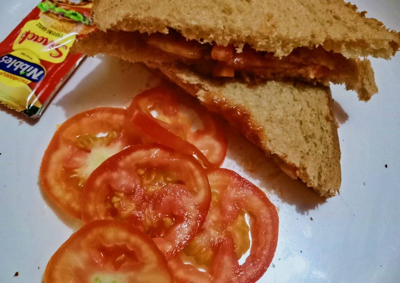 - Now put another bread on it and serve it with tomato sauce