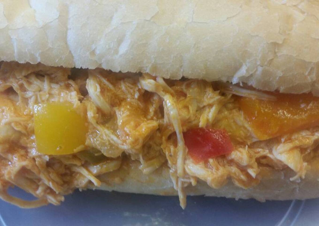 - Add bell pepper and onions to chicken. Mix. Add buffalo sauce. Mix.